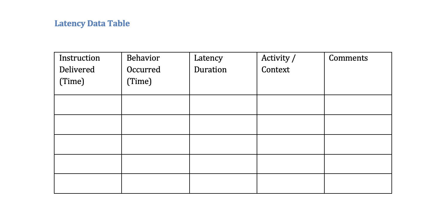 Free Latency Data Collection Sheet for Behavior Analysts and RBTs