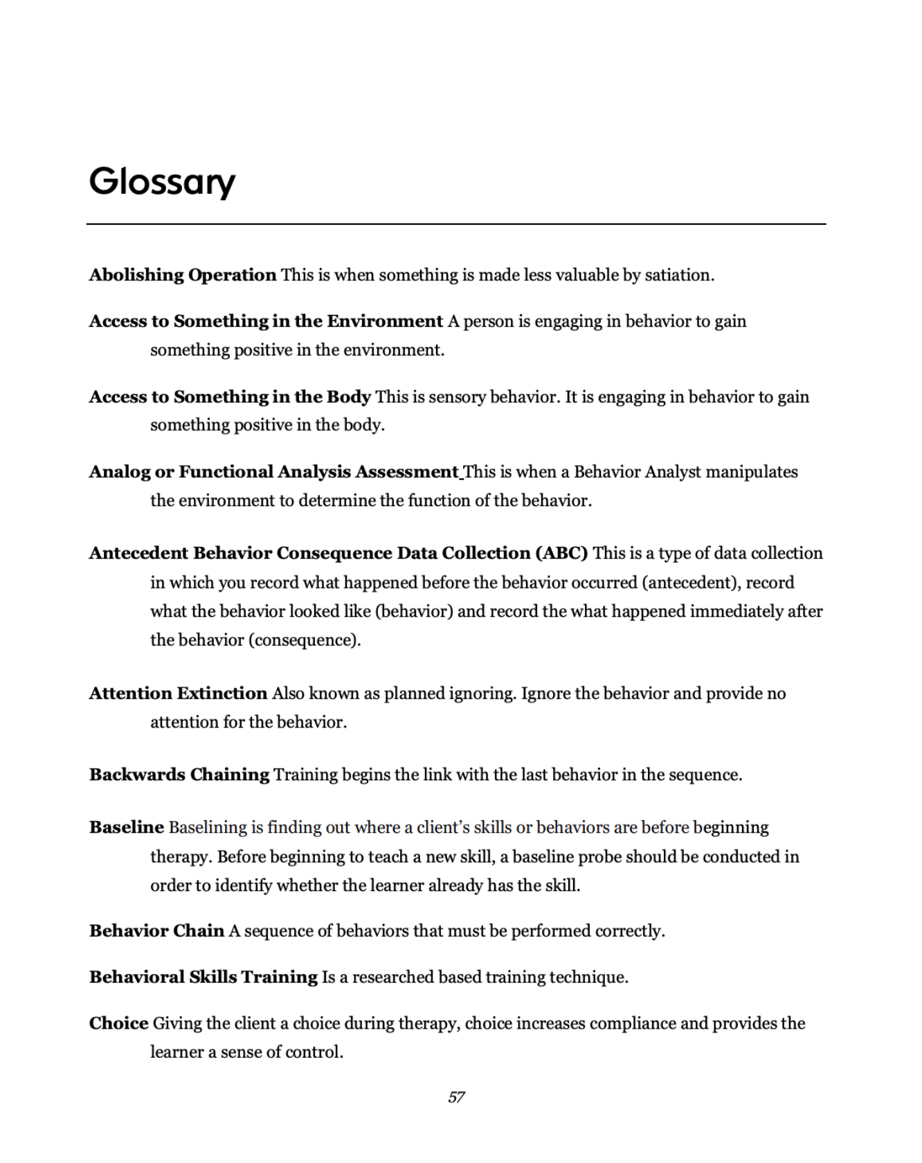 This RBT study guide provides comprehensive coverage of all topics included in the RBT® task list. It is designed to assist you in organizing your study plan and preparing for the exam for your RBT certification. The guide contains clear and concise definitions and examples organized by the task list, which will help you identify your strengths and weaknesses in the content.